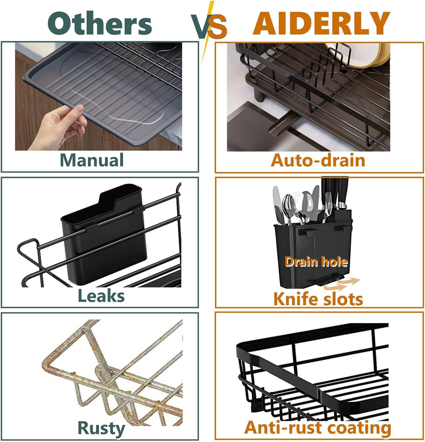 Easy to Assemble: Packed with racks, water collector tray, utensil holder, knife slot, and drainage board feet, Only took 5 minutes or less to get it all put together, no extra tools needed.